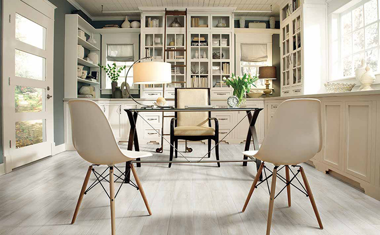 Sure, you’re home from work. But the kids are home from school, too. So, turn your home office into a space that works for all of you—go from homeschooling to work meeting, seamlessly. As mentioned, luxury vinyl is an exceptional hard-surface flooring option for a multipurpose room. It’s beautiful, durable, and waterproof—perfect for every school (and work) activity. And with wood and tile styles, you can find something that works for you and your family.