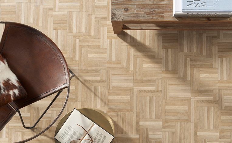 Not to be confused with grain pattern (which refers to the markings on each plank or board), “installation pattern” describes the physical arrangement of tiles or planks. For example, tiles or planks can be arranged in a square grid, or, for a bolder and more modern look, a zig-zagging chevron pattern.
