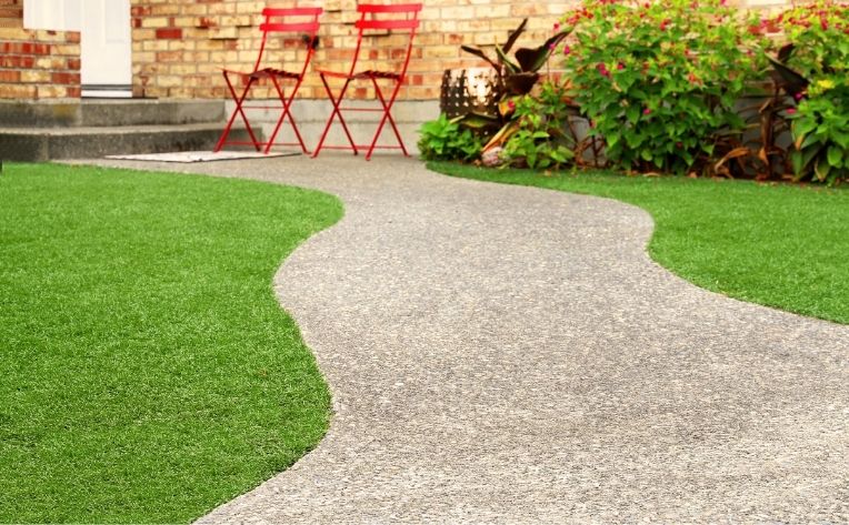 Even if you’re not looking to replace your entire lawn with turf landscaping, turf can play a huge role in outdoor entertainment spaces. Many homeowners have taken advantage of turf for walkways. It adds a distinctive element to flower and vegetable garden paths, replacing stepping stones. Others have chosen to cover their concrete patios or pathways to give their space a bright, green look. And even if you don’t want to cover your patio (or balcony!) completely in turf, it adds a striking accent below seating areas or outdoor dining tables to create a more inviting dynamic.